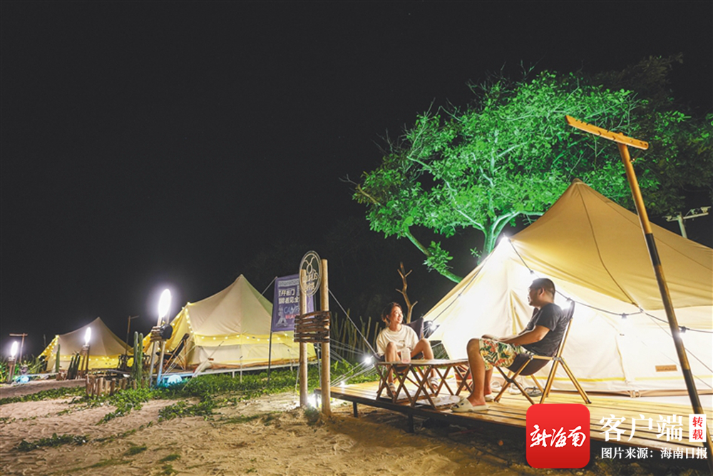 近日,游客在三亞蜈支洲島旅游區(qū)體驗(yàn)露營(yíng)。海南日?qǐng)?bào)記者 武威 攝