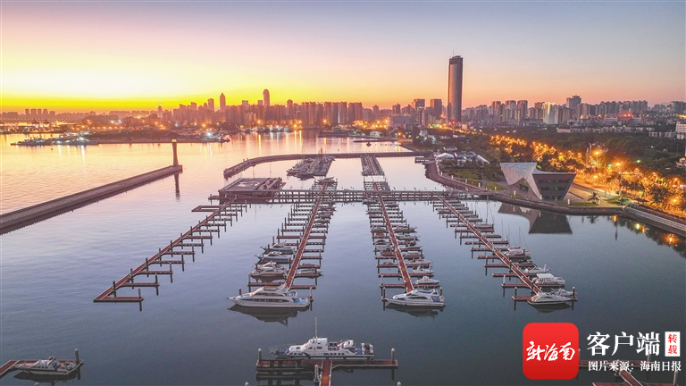七月二十三日清晨,在??谑袊曳毓泊a頭,部分參加2022年中國國際消費品博覽會游艇展的游艇已抵達碼頭停泊。海南日報記者 陳元才 攝