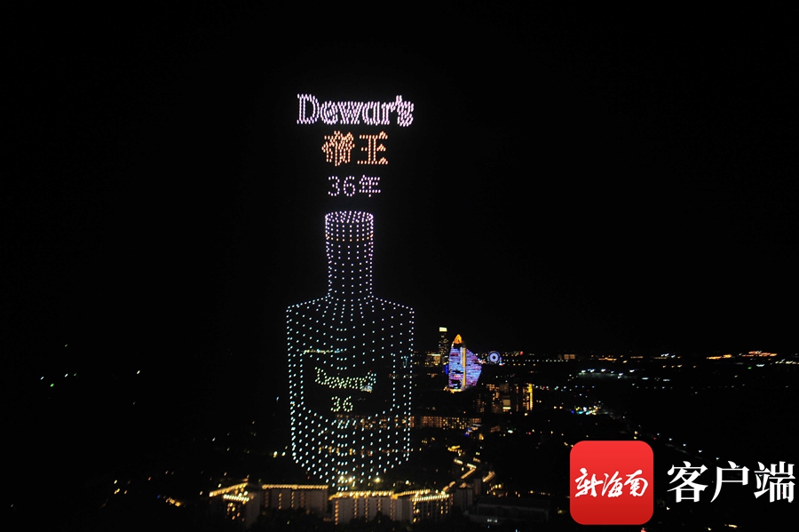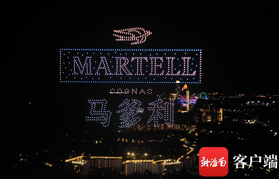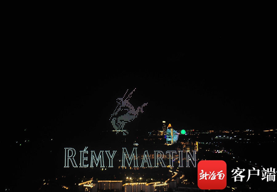 隨后,馬爹利XXO、Dewar’s 帝王、Rémy Martin人頭馬名酒等瓶身悉數亮相三亞海棠灣夜空,瓶身閃爍金光,品牌Logo 顯目亮眼,引得現場觀眾連連贊嘆。光影變幻,霓虹閃爍、隊列交錯,瞬時騰空的千架無人機呈現一場炫酷的空中光影魔術,為市民游客帶來一場更高品質科技打造的精彩絕倫視聽盛宴。
