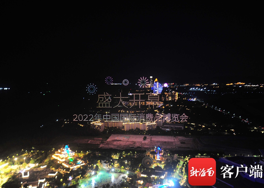 當晚20時,1000架無人機緩緩爬升,如螢火蟲在空中漫天飛舞,星星點點拼湊出首個表演畫面——2022年中國國際消費品博覽會盛大開幕。