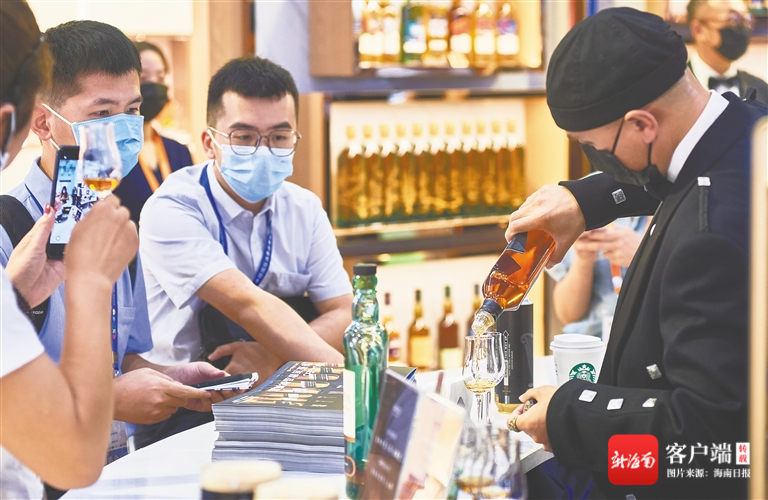 7月27日,消博會3號館帝亞吉歐展位現場舉行美酒品鑒活動。海南日報記者 封爍 攝
