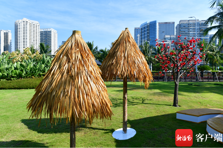 記者在現(xiàn)場(chǎng)看到,昌江藝術(shù)打卡區(qū)雖然面積不大,卻集中展示了昌江特色。在打卡區(qū)正中央,擺放的織錦架和黎錦,黎族人民日常的生活狀態(tài),仿佛就在眼前上演。打卡區(qū)一側(cè),一株紅艷艷的大型仿真木棉花,“開得”如霞似火;另一側(cè),融合昌江特色茅草屋元素的太陽傘次第擺放,充滿著樸實(shí)的藝術(shù)氣息。
