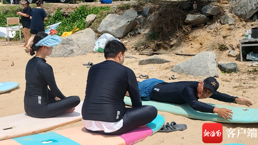 沖浪教練對(duì)游客進(jìn)行下水前的培訓(xùn)。張野攝