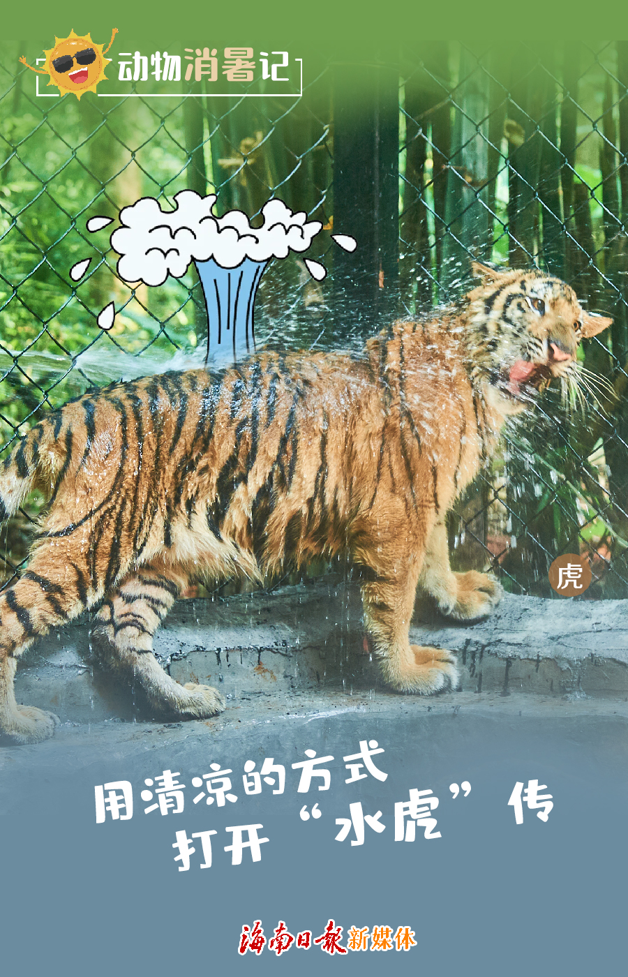 在海南,三伏天的午后,氣溫攀升,濕熱的空氣容易使人無精打采,動物也不例外。面對陣陣暑氣,為了給動物們消暑納涼,海南熱帶野生動植物園的保育員們使出了渾身解數。下面一組創意海報,帶你看看動物們的消暑“涼方”。