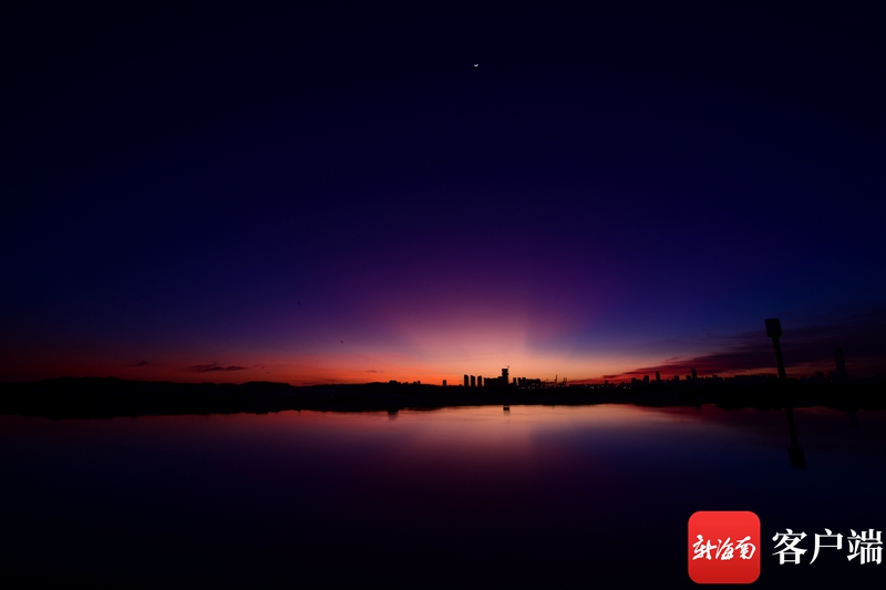 新海南客戶端、南海網、南國都市報8月23日消息(記者 陳衛東)8月23日,農歷處暑,記者在海口西海岸拍攝了一組朝霞的鏡頭。