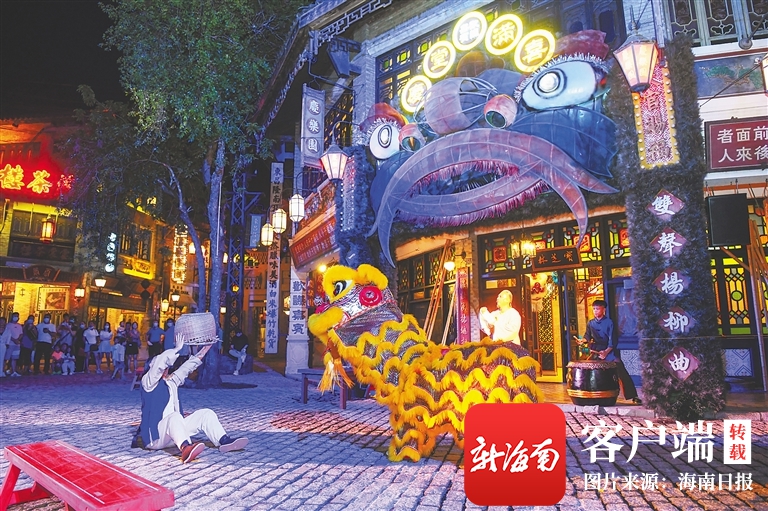十月二日,在海口觀瀾湖華誼馮小剛電影公社南洋潮景區,大型戶外實景演出《南洋往事Ⅰ》前奏版公演吸引游客觀看。海南日報記者 袁琛 攝