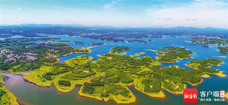 藍天白云下,定安南麗湖景區風景如畫。海南日報記者 張茂 攝