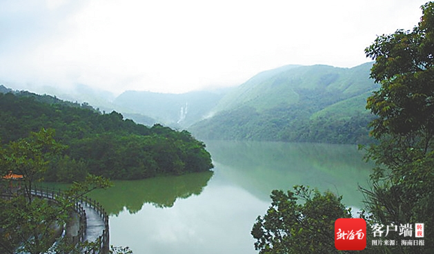 這里群山環抱,湖面如仙人洗面之鏡,被五指山、鸚哥嶺、霸王嶺、黎母山等山嶺環繞,自然資源十分豐富。放眼望去,還有瀑布飛濺直下,落入深潭,長流不止。