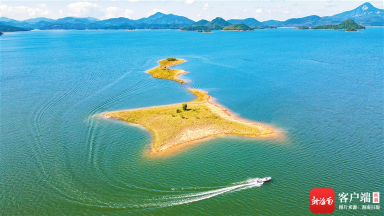 大廣壩截斷昌化江成湖,作為海南第二大水庫,大廣壩水庫蓄水達17億立方米,水庫湖面100平方公里,庫區水美、山秀、云奇,是旅游休閑的絕佳去處。從空中俯瞰,庫區呈現狹長的“水滴子”形狀,兩岸有眾多可供游玩的湖灣。