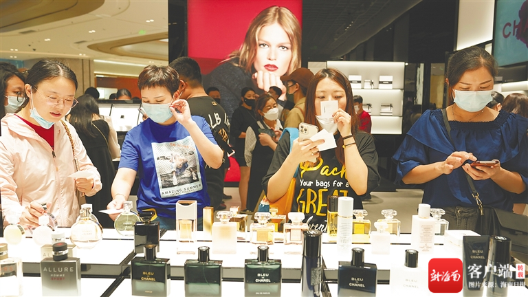 顧客在選購免稅美妝商品。海南日報(bào)記者 張茂 攝