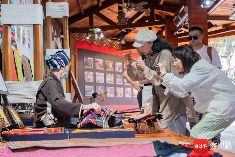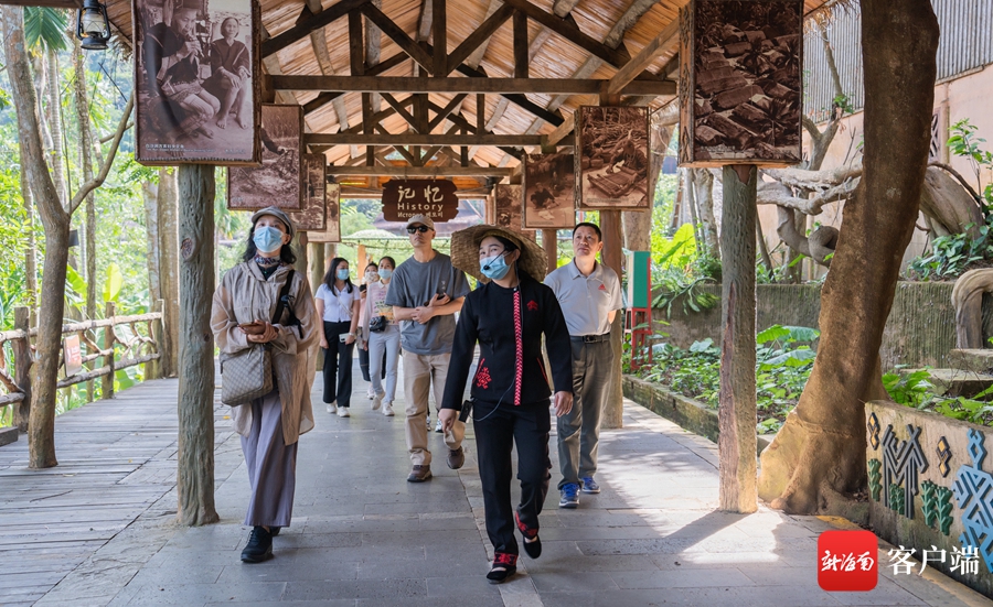 秋日的檳榔谷草木蔥蘢。采風團一行在來自黎族杞方言片區的講解員阿靜的引導下,沿著蜿蜒的雨林石徑探訪非遺村,穿過文化長廊,在一幅幅珍貴圖像前細細品讀,感悟黎族文化的滄桑巨變。