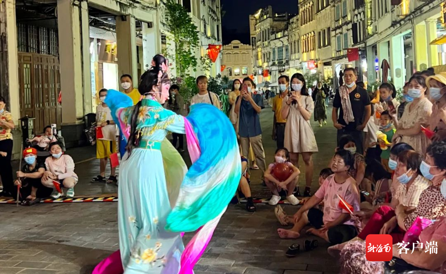 市民游客在騎樓老街觀看演出。海口市旅文局供圖