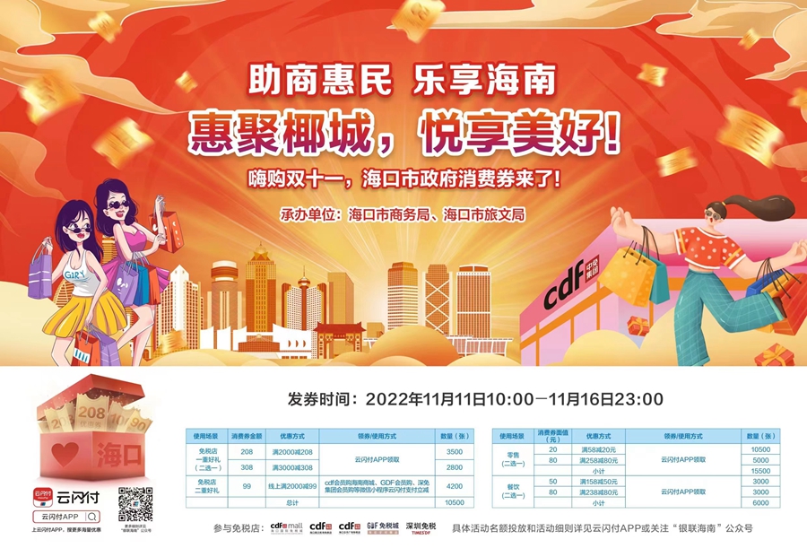11月11日至16日,海口又有消費券發放,快看領券攻略→