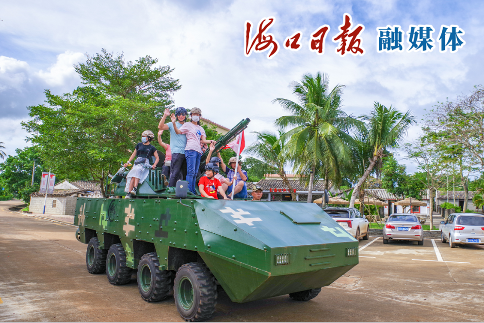 瓊山區云龍鎮長泰村長泰軍事實踐基地,小朋友正體驗“裝甲車”。??谌請笕诿襟w見習記者 孫士杰 攝