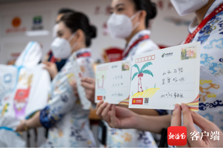 空乘展示為旅客準備手繪明信片。記者 劉洋 攝