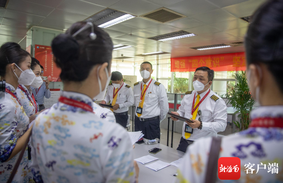 執飛前,航班機組人員開準備會。記者 劉洋 攝