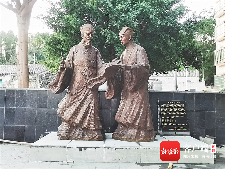 蘇軾與姜唐佐雕像。資料圖