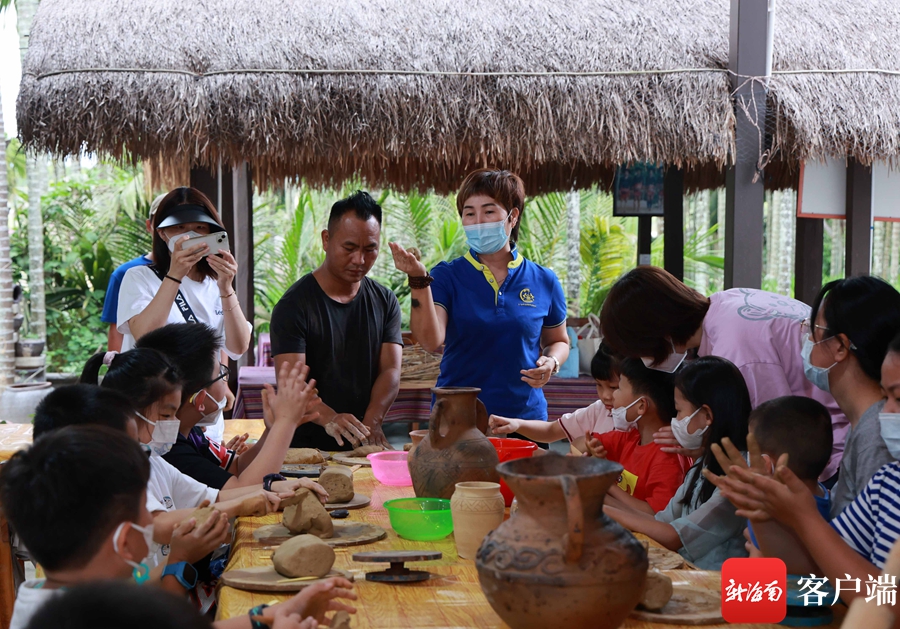 黎陶是黎族同胞傳承千年的傳統技藝,記錄著黎族同胞的生活習俗及制陶史,也因此被稱為民間文化歷史的“活化石”。走進黎家鄉情非遺文化產業園,各類陶器讓游客應接不暇。在老師的講解下,大家迫不及待地開始制作黎陶。“很喜歡黎陶培訓課程,既鍛煉孩子們的動手能力,也跟老師學到了很多黎族傳統制陶技藝的知識。”游客李女士說。
