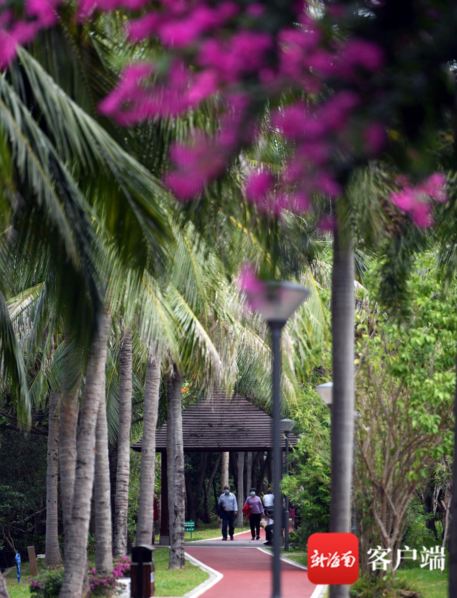 新海南客戶端、南海網、南國都市報12月15日消息(記者沙曉峰)三角梅開得爛漫,椰子樹郁郁蔥蔥。 12月15日,記者在三亞臨春河東側綠道看到,這里已成網紅“打卡點”,吸引眾多市民、游客前來拍照。