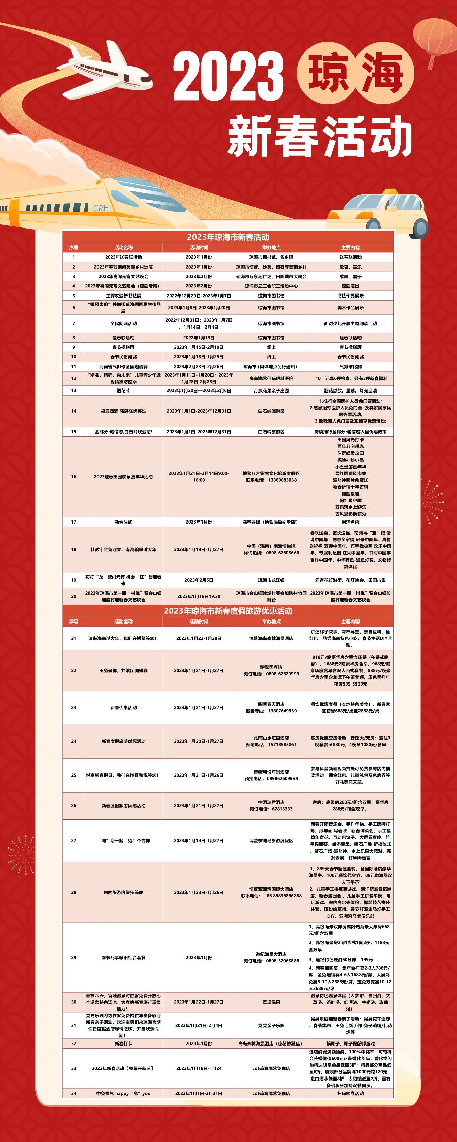 新海南客戶端、南海網、南國都市報1月18日消息(記者蘇桂除)今年春節假期,瓊海市旅游和文化廣電體育局聯動各涉旅文企業,共同推出豐富多彩的旅游文化惠民活動,既有各大旅游景區(點)舉辦的不同主題新春潮玩七天樂活動,讓你的旅程更有獲得感,也有文化范的春節惠民演出,讓你感受更有煙火氣、濃濃年味的瓊海!