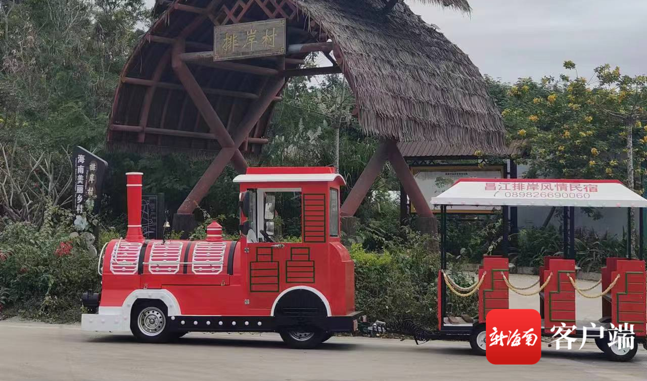 游客可以坐上小火車打卡觀光排岸村,觀賞木棉花。