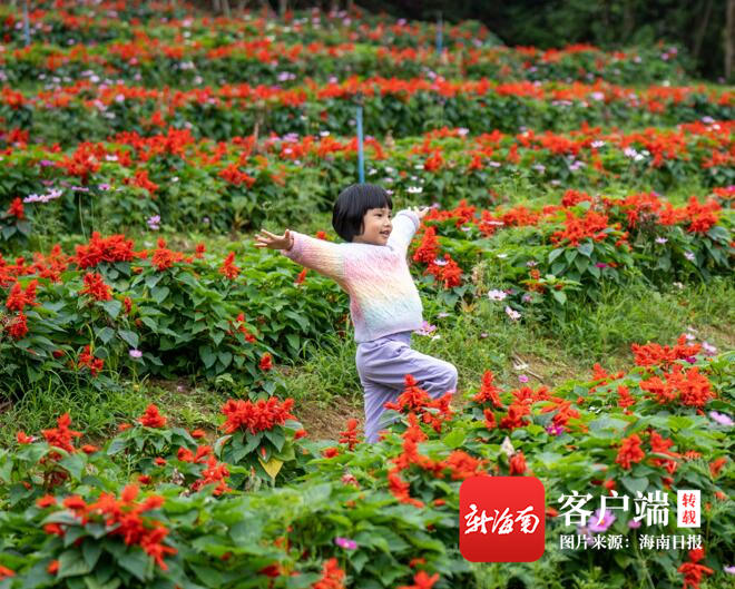 ?1月25日,小游客在屯昌夢幻香山的花海里玩耍。 海南日報記者 袁琛 攝
