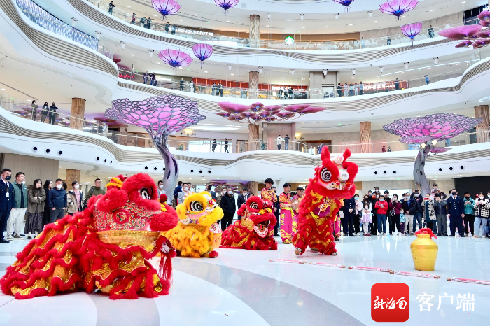 游客在??趪H免稅城觀看舞獅迎春表演。海口國際免稅城供圖