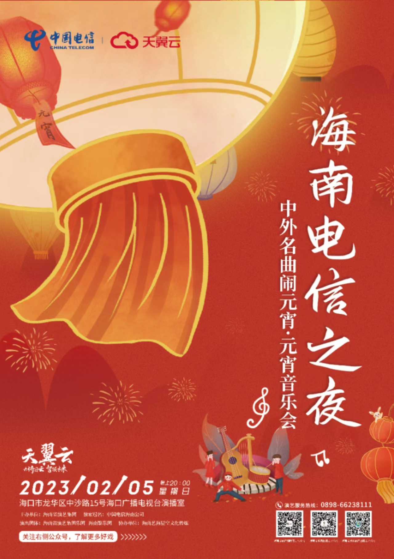 “海南電信之夜——中外名曲鬧元宵”元宵音樂會海報。海南省演藝集團供圖
