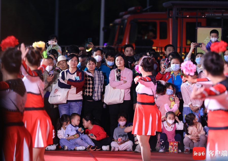 廣場(chǎng)換花舞表演間隙,主持人與市民游客熱鬧互動(dòng)。記者 姚皓 攝