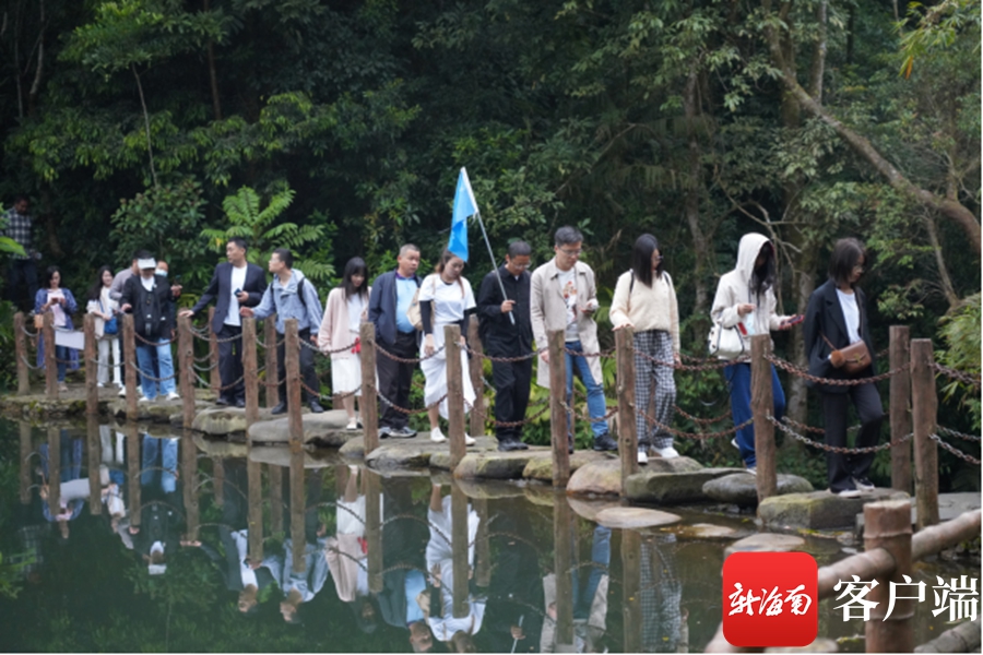 上午,研學深度游成員們登上美麗如畫的百花嶺時不禁感嘆:此景只應天上有,人間哪得幾回聞?!霸诎倩◣X,縱享山水之樂,探尋雨林之趣。雖然沒有登上黎母山,但登上了與黎母山有相似雨林奇觀的百花嶺,感受到了東坡先生筆下關于海南山水景色描寫的美好不枉來一趟。”