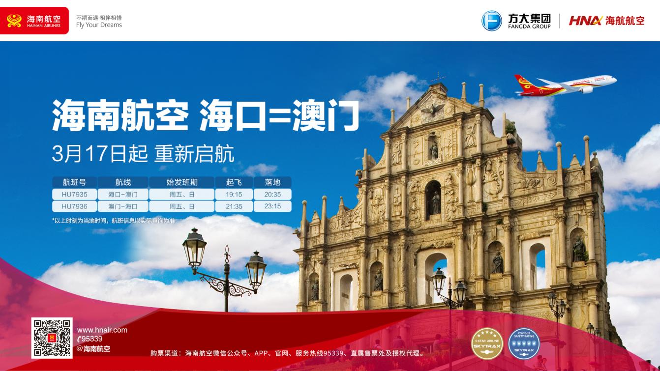每周兩班!海口?澳門航線3月17日起復航