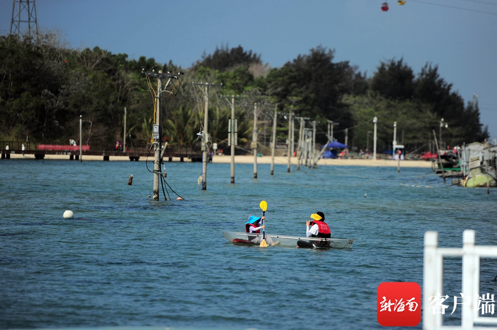 3月14日,游客在海南首家海上共享漁莊劃玻璃船。記者沙曉峰攝