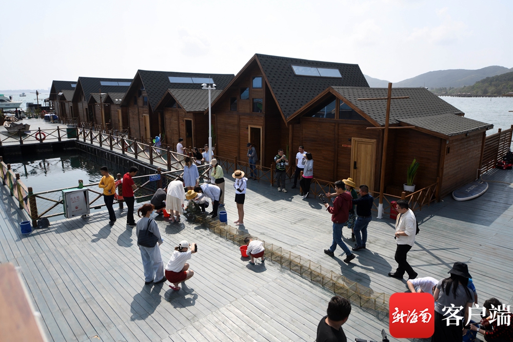 “到了,你看,這就是海上民宿。”3月14日,坐在接駁船東張西望的湖南游客張小姐看到不遠(yuǎn)處海上共享漁莊上獨(dú)具一格的海上民宿后,高興地對同伴說。