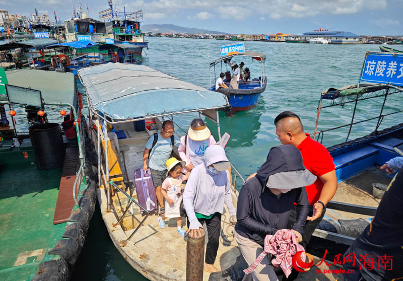 退房后的游客乘船上岸。人民網(wǎng) 牛良玉攝