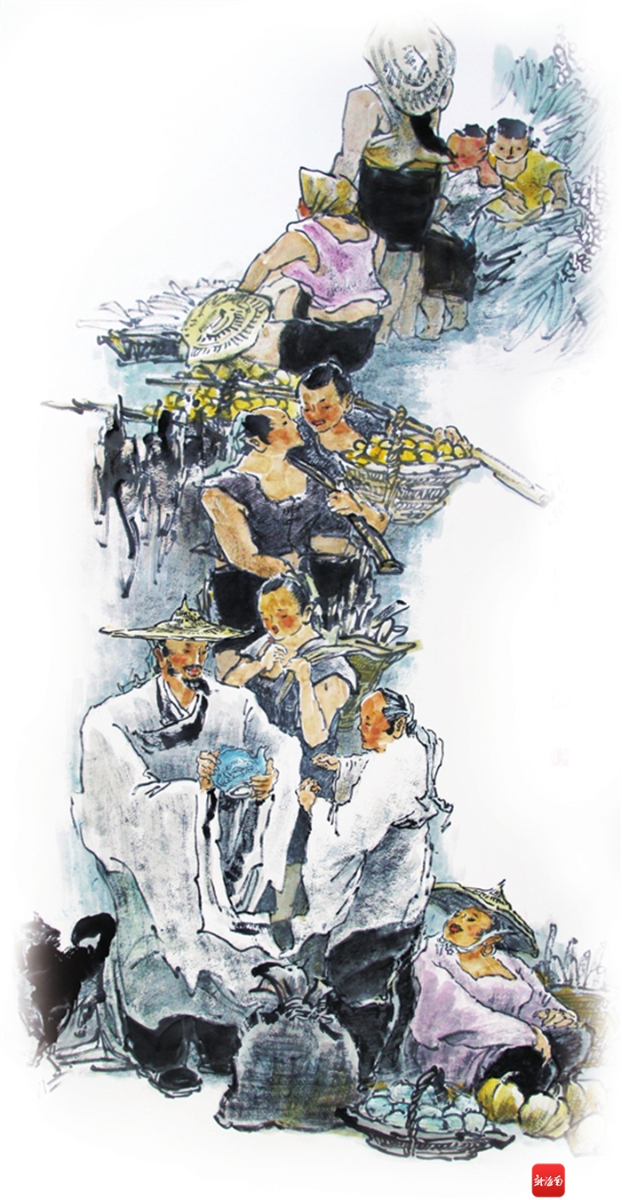 《東坡鬻器圖》(國畫)。劉運良 繪