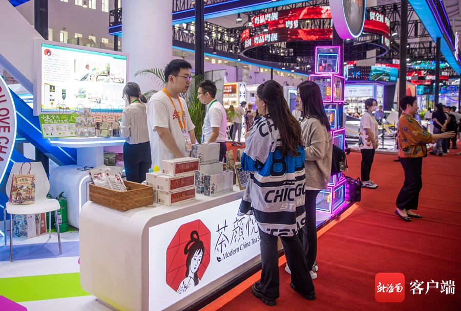 在湖南館,網(wǎng)紅茶飲茶顏悅色展臺前,工作人員同觀眾交流。記者 劉洋攝