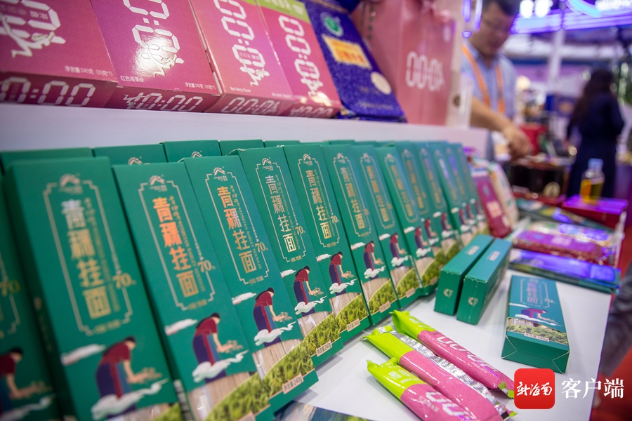 現(xiàn)場展出的青稞掛面。記者 劉洋攝