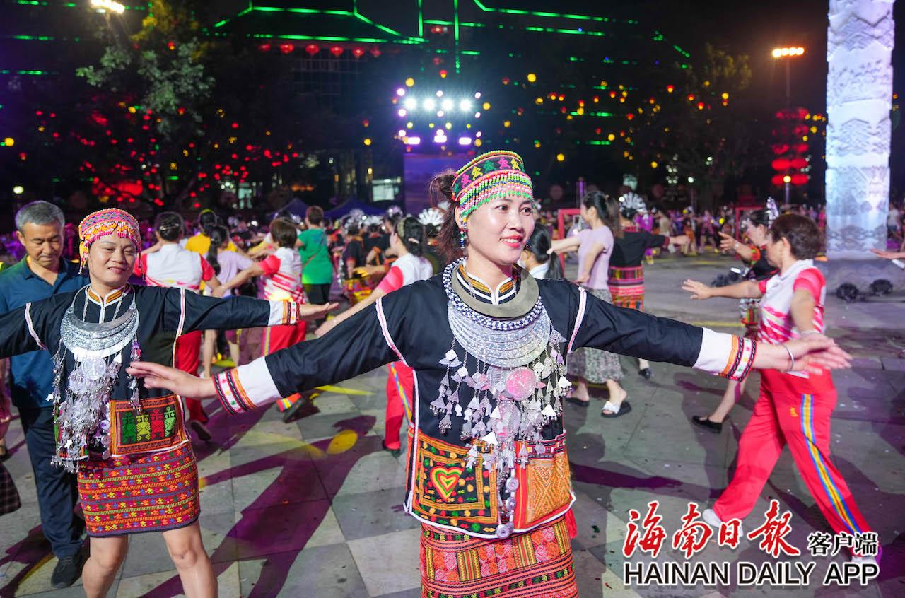 4月17日,五指山市通什鎮三月三廣場的千人共同舞現場熱鬧非凡。海南日報記者 李天平 攝