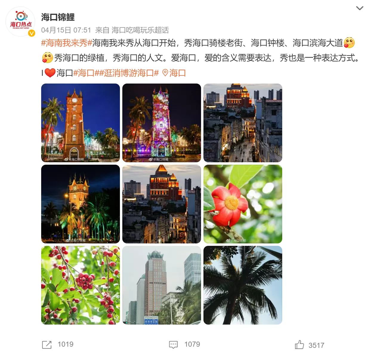 網(wǎng)絡(luò)大聯(lián)動(dòng)——“海南我來秀”活動(dòng)第一期的主題是“秀海南名片”,于4月10日啟動(dòng),此次活動(dòng)一經(jīng)發(fā)起,短短數(shù)天時(shí)間里,海南社會(huì)各界、各地網(wǎng)友踴躍投稿,其中有海南白沙、儋州等大部分市縣融媒,海南省新媒體協(xié)會(huì)、??谑行旅襟w協(xié)會(huì)以及自媒體達(dá)人等,大家紛紛用自己的鏡頭定格心目中的城市地標(biāo)性建筑或者能代表市縣形象的活動(dòng)、景觀、特色產(chǎn)業(yè)等,為海南打call。