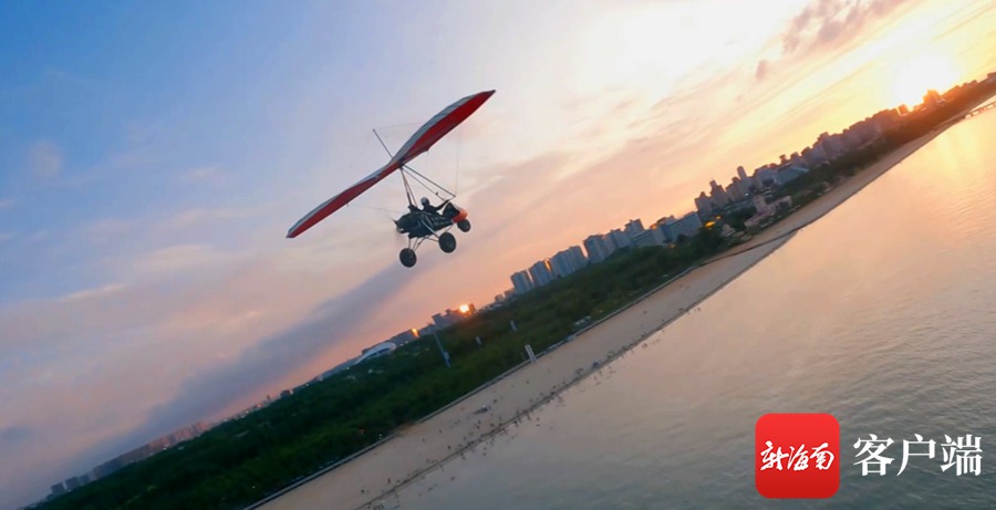 ?乘坐動力三角翼,高空看海口。??谑新梦木止﹫D