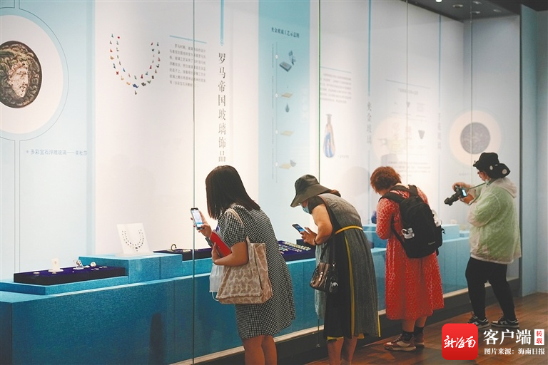 4月20日,觀眾在海南省博物館觀看“瑠光異彩——絲路上的古玻璃器藝術展”。海南日報記者 張茂 攝