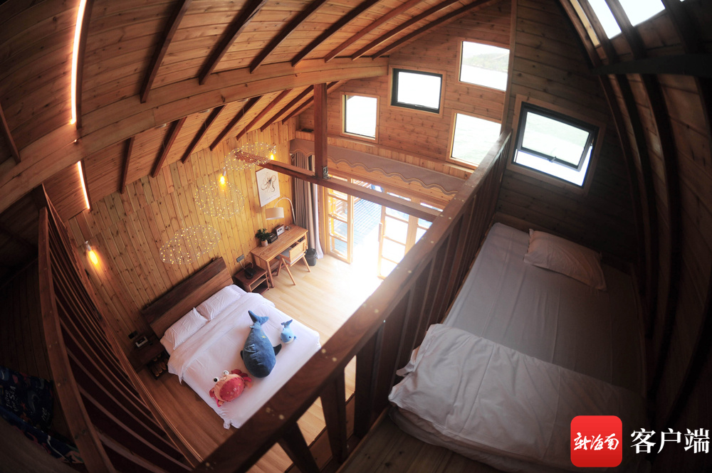 海南首家海上共享漁莊的船型屋客房。記者 沙曉峰 攝