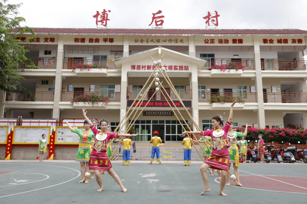博后村村民表演歌舞。