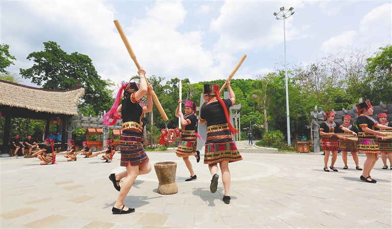 資料圖:浪論村村民為游客表演黎族風情歌舞。記者 陳元才 攝