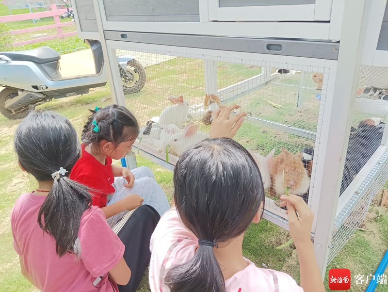 小朋友在熱帶水果基地水果萌寵森林觀看小動物。記者蘇桂除攝