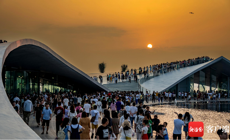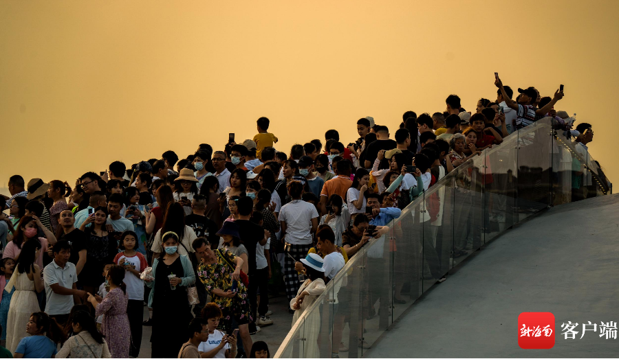 新海南客戶端、南海網(wǎng)、南國都市報5月2日消息(記者 劉孫謀)5月1日下午6點左右,許多市民游客趕往海口海甸島美麗沙海岸西北處的海口灣6號驛站——“天空之山”,在此等待落日,遠望過去人山人海,市民拿著手機在等待夕陽西下。