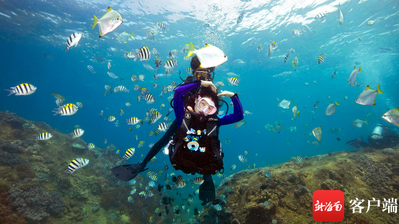 游客在蜈支洲島潛水。蜈支洲島旅游區供圖