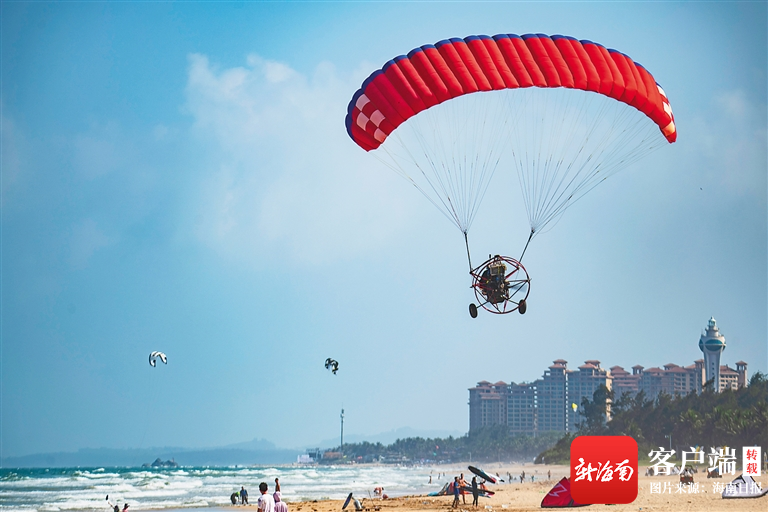 游客在瓊海博鰲海濱體驗滑翔傘項目。特約記者 蒙鐘德 攝