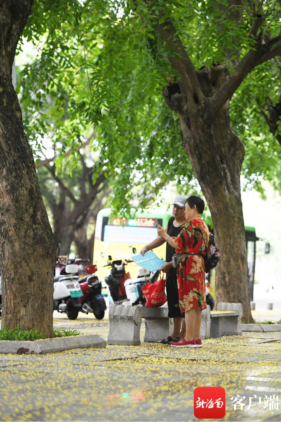 5月,海南三亞,人們從紫檀樹下路過。記者 沙曉峰 攝