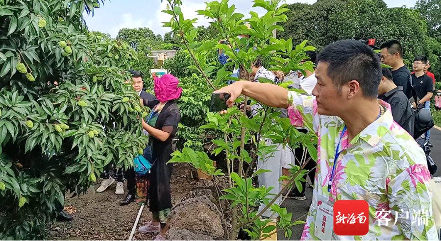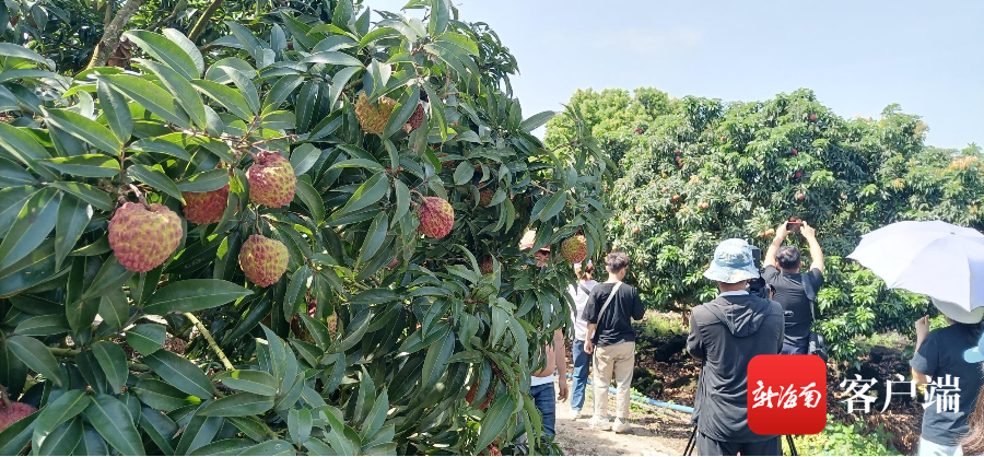網(wǎng)絡(luò)主播和游客等入園參觀等待上市的火山荔枝。記者 王康景 攝